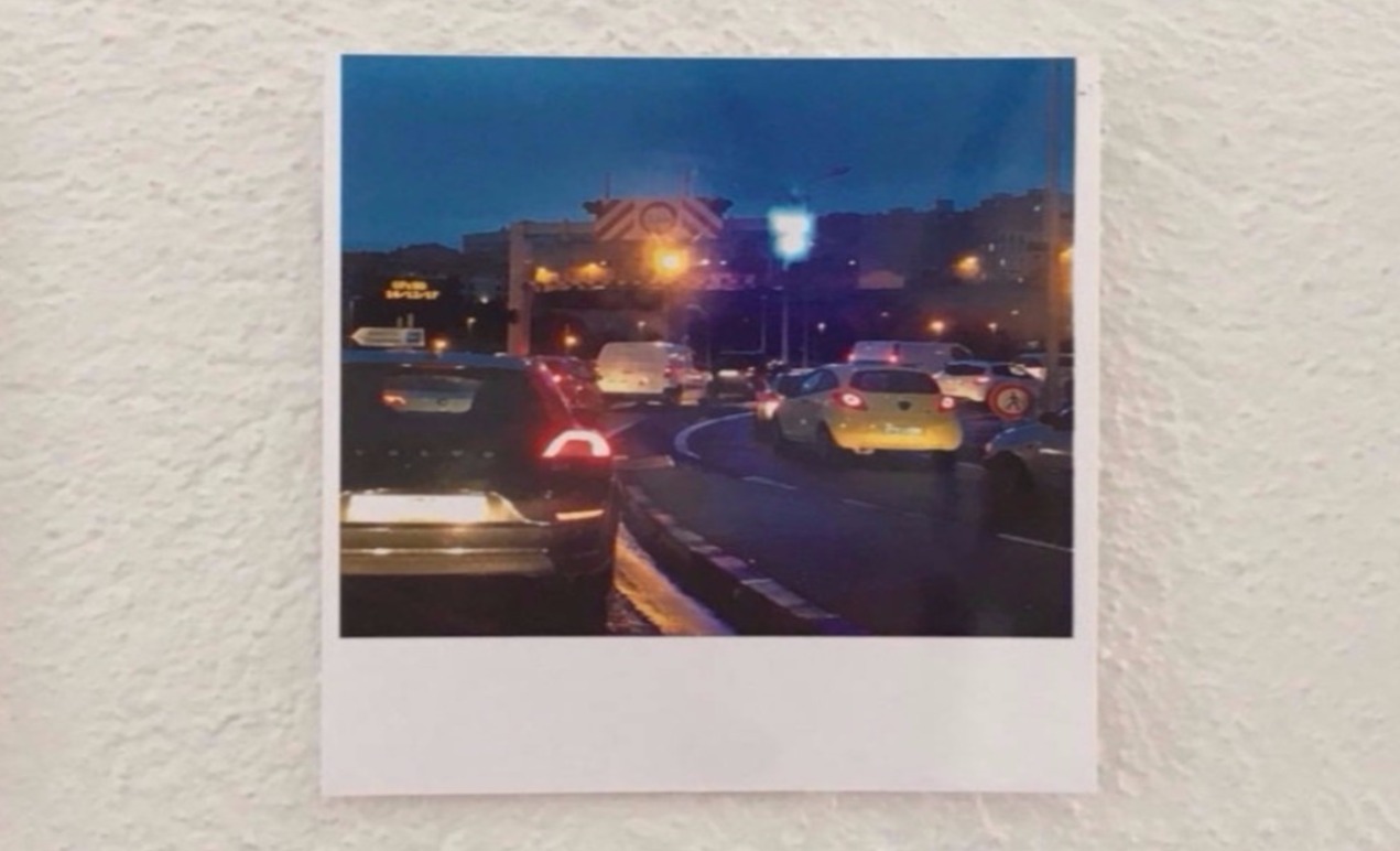 Formes et lumière, à travers le pare-brise... un instant de la vie quotidienne moderne pour échapper au sentiment l'enfermement. Grâce à la technologie, une image se superpose à une autre.
